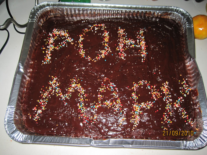 сверху украсить кому чем хочется. у меня обычно дома съедается без украшений. для садика намазала взбитыми сливками, посыпала шоколадными палочками и съедобную картинку налепила.