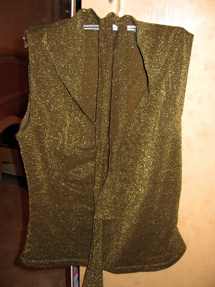 Кофточка синтетическая блестючая:) 30 шек. Вокруг шеи вот та тесемочка аккуратненько затягивается:).Тоже размер примерно сороковый.