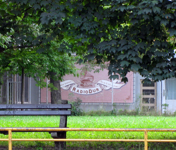 Там же на стене была реклама популярного радио в Словении (с оригинальным для нашего уха и зрения названием:)), которое мы слушали все время поездок в машине.